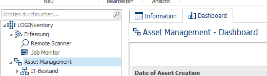 Sie können Dashboards auch für Knoten verwenden, die standardmäßig eine Informationsseite anzeigen, also z.B. Asset Management, IT-Bestand, etc.. Das Dashboard wird in diesem Fall beim Aufruf des Knotens automatisch angezeigt.