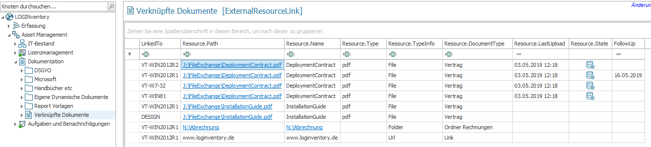 Dateien, die dem Resource Repository zugewiesen werden, werden in der Datenbank verwaltet und stehen an verschiedenen Stellen in LOGINventory zur Verfügung. Standardmäßig sind bereits verschiedene png-Dateien vorhanden, die verwendet werden können, um einer Abfrage ein anderes Icon zuzuweisen.