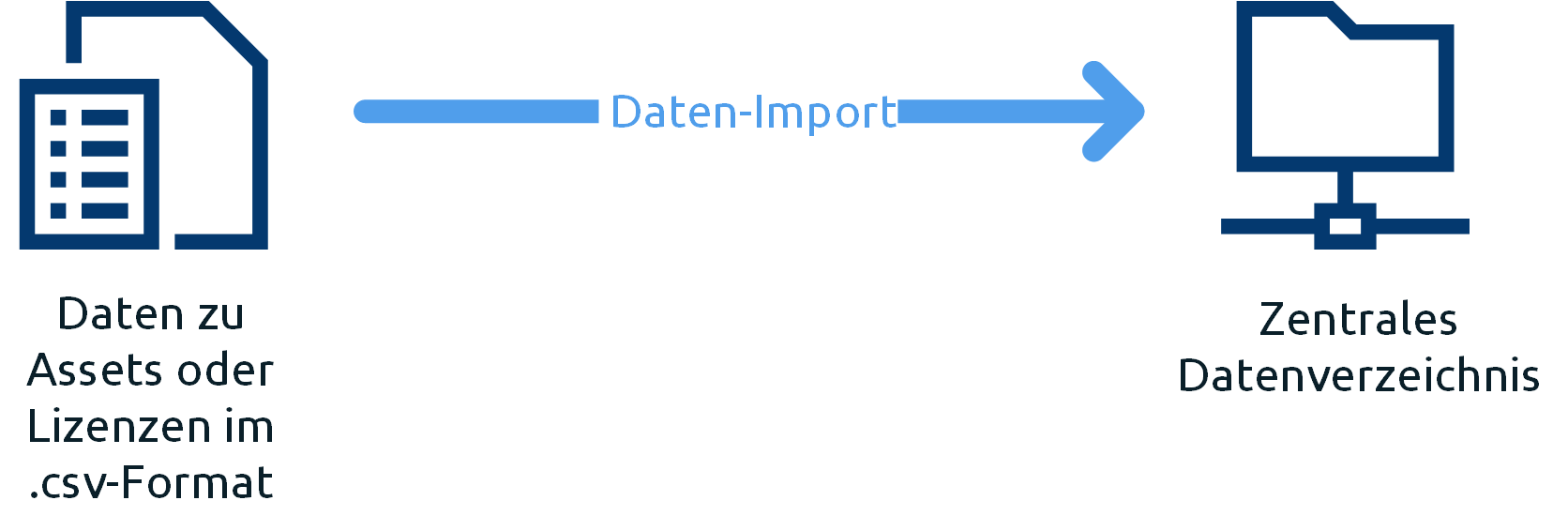 Noch einfacher, falls mehrere Assets auf einmal angelegt werden sollen, ist die Nutzung des Daten-Imports. Mit dem Daten-Import können aus csv-Dateien Daten direkt in die LOGINventory-Datenbank eingetragen werden. Das ist z.B. sehr praktisch, um massenhaft Assets anzulegen, Eigene Eigenschaften zu Assets zuzuweisen oder Lizenzen einzulesen. Damit der Import funktioniert, muss lediglich einmal eine Zuordnung zwischen den Spaltennamen aus der Quelldatei und den Namen in LOGINventory getroffen werden. Daraufhin werden alle csv-Dateien automatisch eingelesen, welche im Datenverzeichnis abgelegt werden und dem festgelegten Namensmuster entsprechen.
