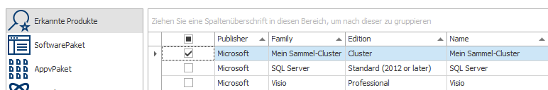 Wenn ein Produkt bereits über die Erkannten Produkte hinzugefügt wurde, muss es natürlich nicht mehr über die Software-Pakete hinzugefügt werden.